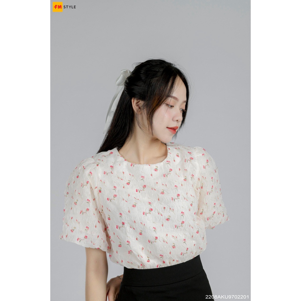 Áo kiểu cổ tròn FM Style hoạ tiết hoa nhí tay phồng nhiều màu sắc dễ thương phong cách ulzzang 208220110