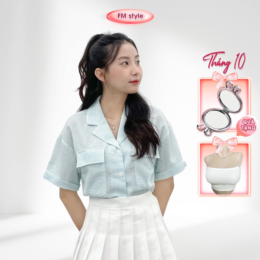 Áo sơ mi caro nữ FM Style tay ngắn form rộng chất đũi xuất xịn phong cách ulzzang Hàn Quốc trẻ trung 205230043