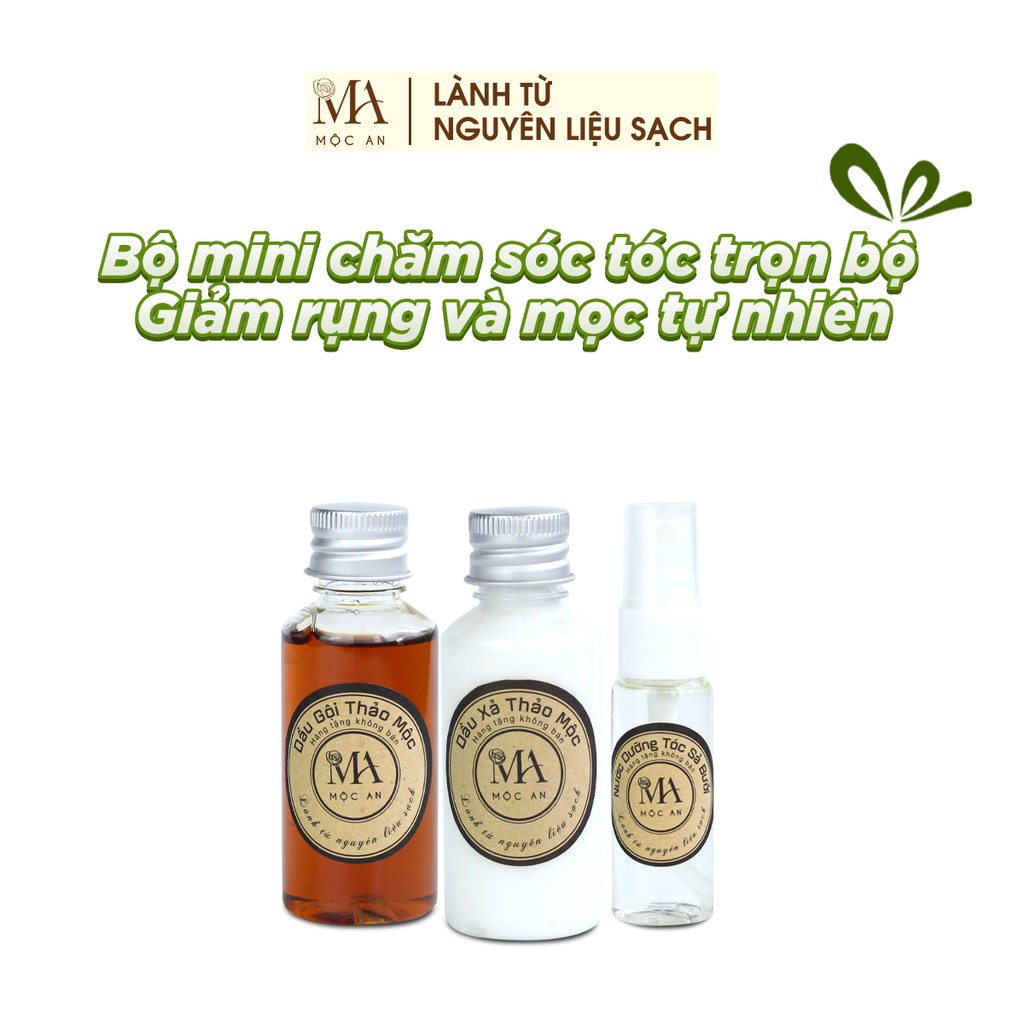 Bộ Sản Phẩm Mini Chăm Sóc Tóc Chuyên Sâu Mộc An 3 Món Giảm Rụng Tóc, Giúp Tóc Mọc Tự Nhiên 80g