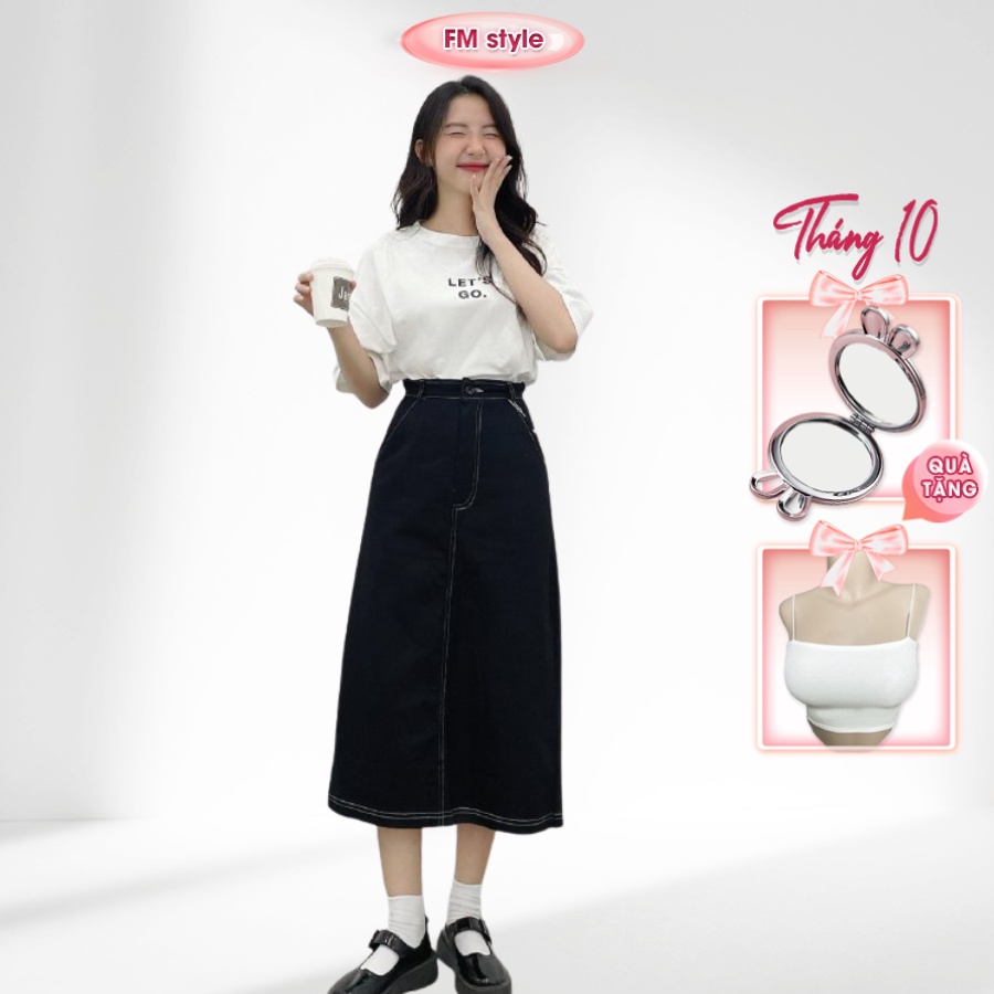 Chân váy dài qua gối FM Style dáng dài midi hoạ tiết chỉ nổi basic siêu xinh thời trang hàn quốc ulzzang 220308051
