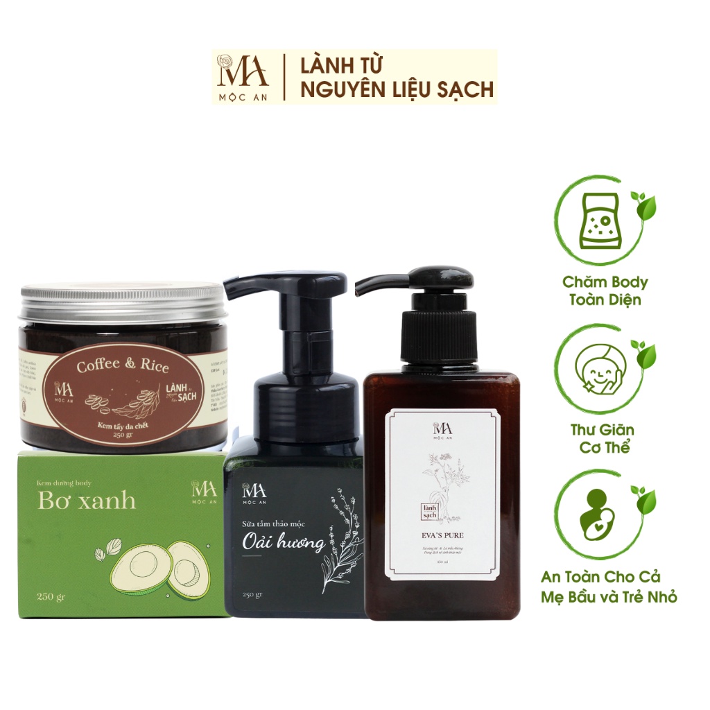 Combo Chăm Sóc Body Toàn Diện Mộc An 4 Sản Phẩm Chiết Xuất Tự Nhiên, An Toàn Cho Da