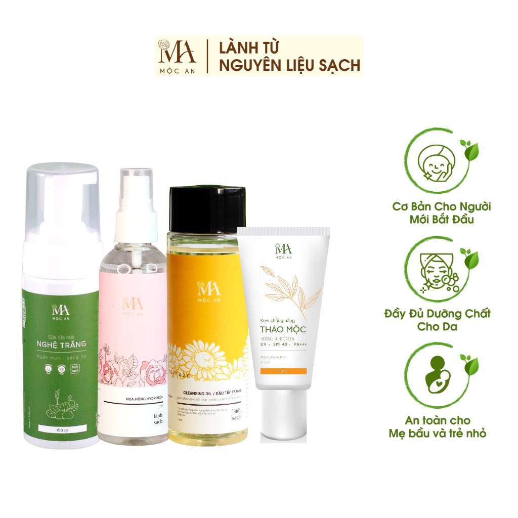 Combo Chăm Sóc Da Mặt Cho Người Mới Bắt Đầu Mộc An 4 Bước Cơ Bản, An Toàn Dịu Nhẹ Cho Da