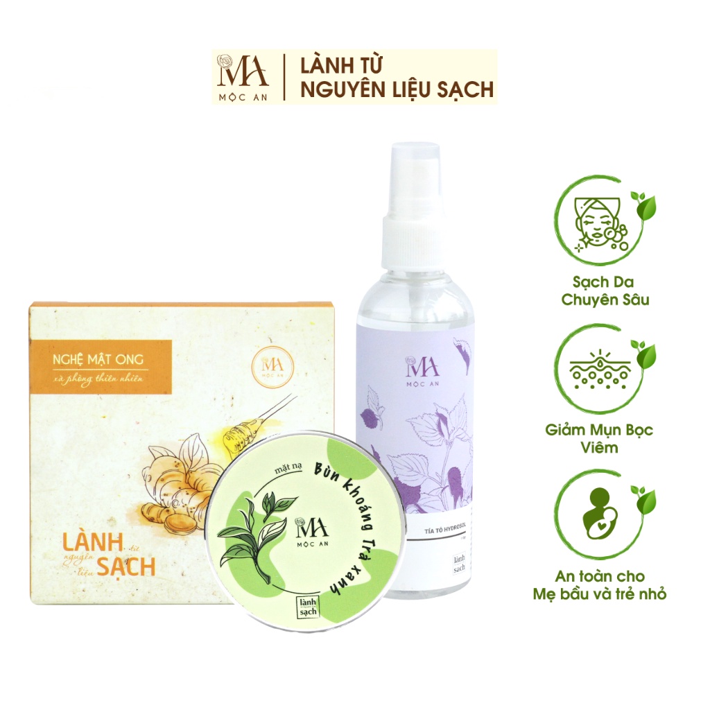 Combo Giảm Mụn Bọc Da Mặt Mộc An 3 Sản Chiết Xuất Tự Nhiên, Chăm Sóc Làn Da Sáng Mịn