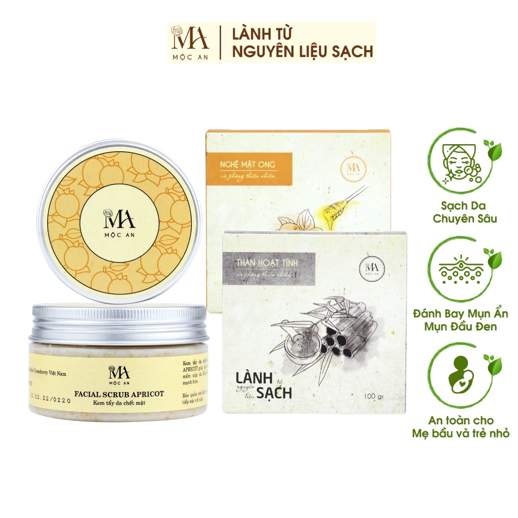 Combo Giảm Mụn Ẩn, Mụn Đầu Đen Và Mụn Cám Cho Da Mặt Mộc An 2 Sản Phẩm Chiết Xuất Tự Nhiên, Cho Làn Da Mịn Màng
