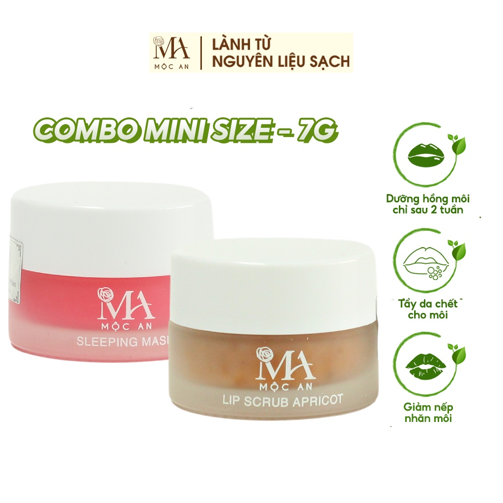 Combo Giảm Thâm Môi Tẩy Da Chết Dưỡng Hồng Môi Mộc An Với 2 Bước Nhanh Chóng