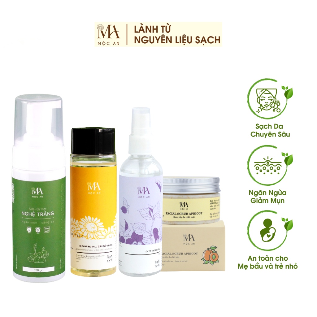 Combo Làm Sạch Da Chuyên Sâu Mộc An 4 Sản Phẩm Nuôi Dưỡng Làn Da Bóng Khoẻ, Giảm Mụn Thâm