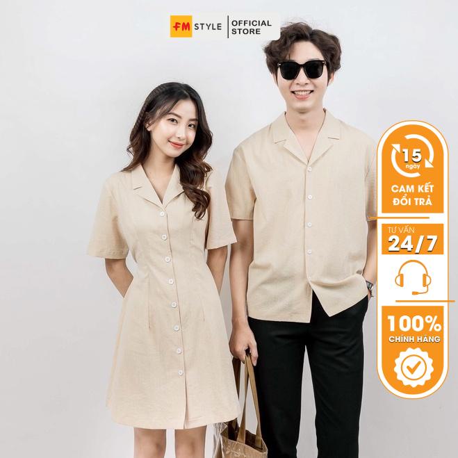 Set đồ đôi FM Style đầm nữ cổ vest dáng ngắn kèm áo sơ mi nam hoạ tiết trơn basic thời trang couple 207220029