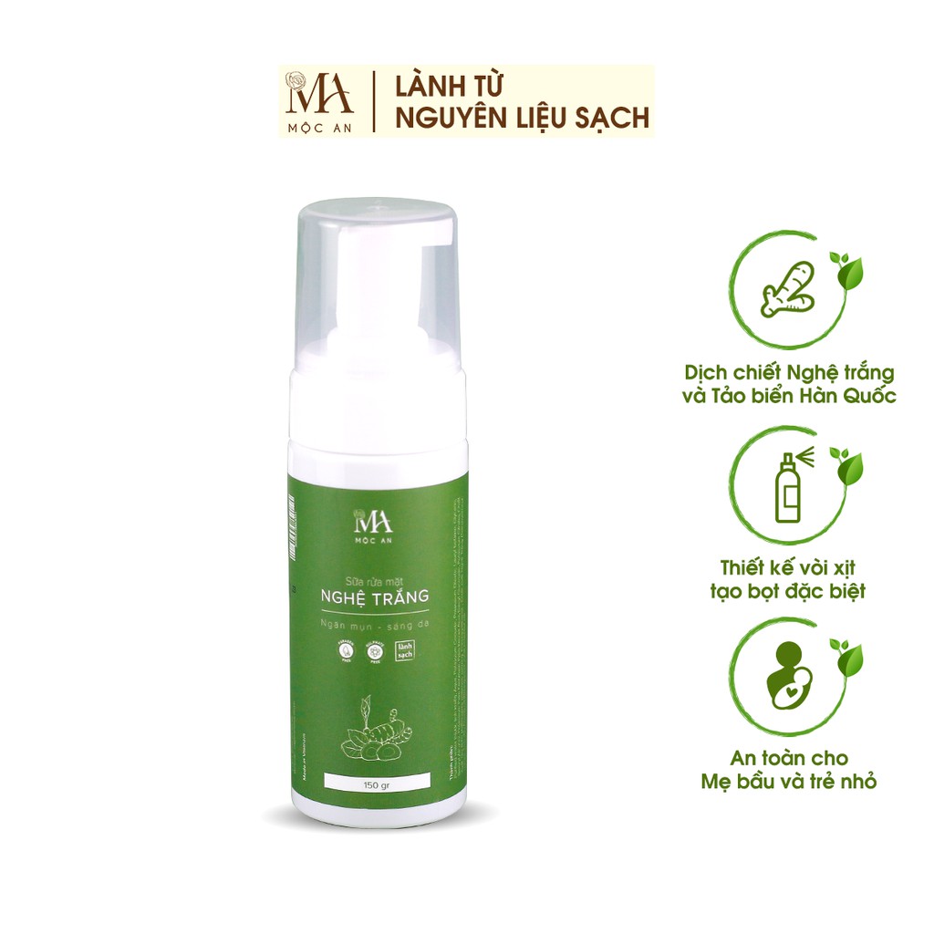 Sữa Rửa Mặt Tạo Bọt Mộc An Chiết Xuất Nghệ Trắng Tảo Biển, Giúp Sáng Da Giảm Mụn 150g