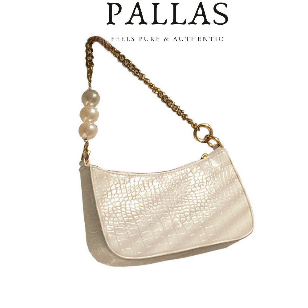 Túi đeo tay Pallas chuỗi ngoc trai cá sấu, da PU nhập khẩu thiết kế theo phong cách cổ điển Pháp, có dây đeo vai
