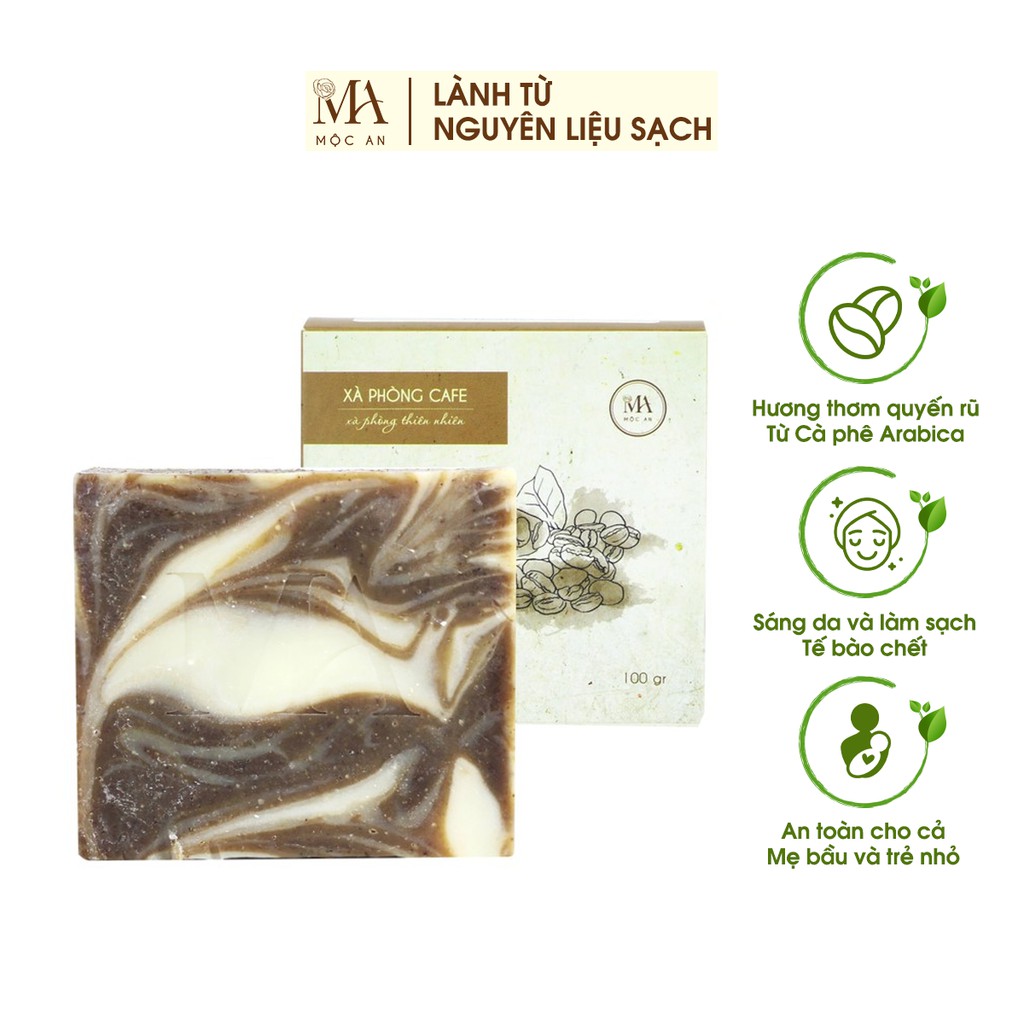 Xà Bông Thiên Nhiên Mộc An Cafe Chăm Sóc Face & Body- Dưỡng Da Sáng Mịn, Loại Bỏ Tế Bào Chết, Giảm Mụn Đầu Đen 100g