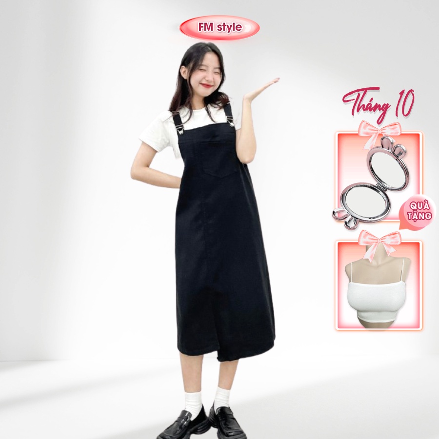 Yếm jean dài FM Style 2 dây dáng dài phối túi trước xẻ lai thời trang dễ thương phong cách ulzzang 207260036